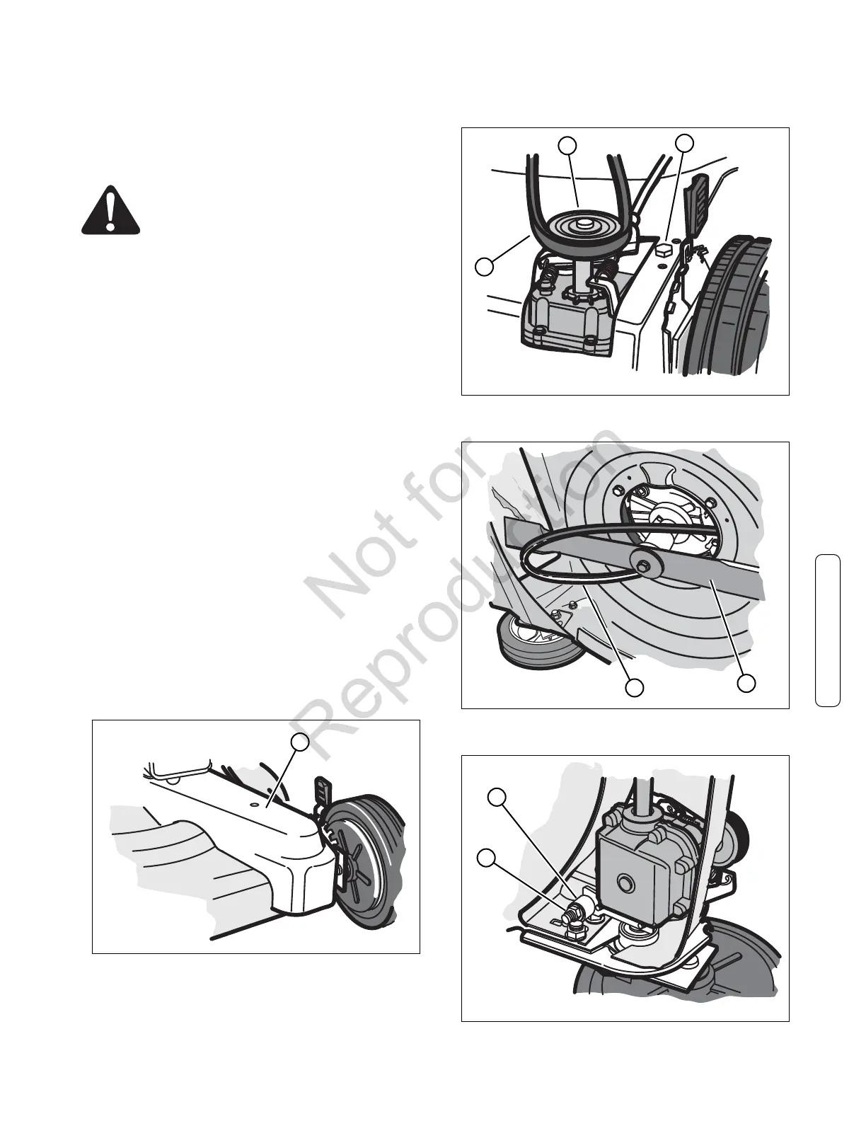 2. To remove the drive belt, tip the mower up. See “Engine