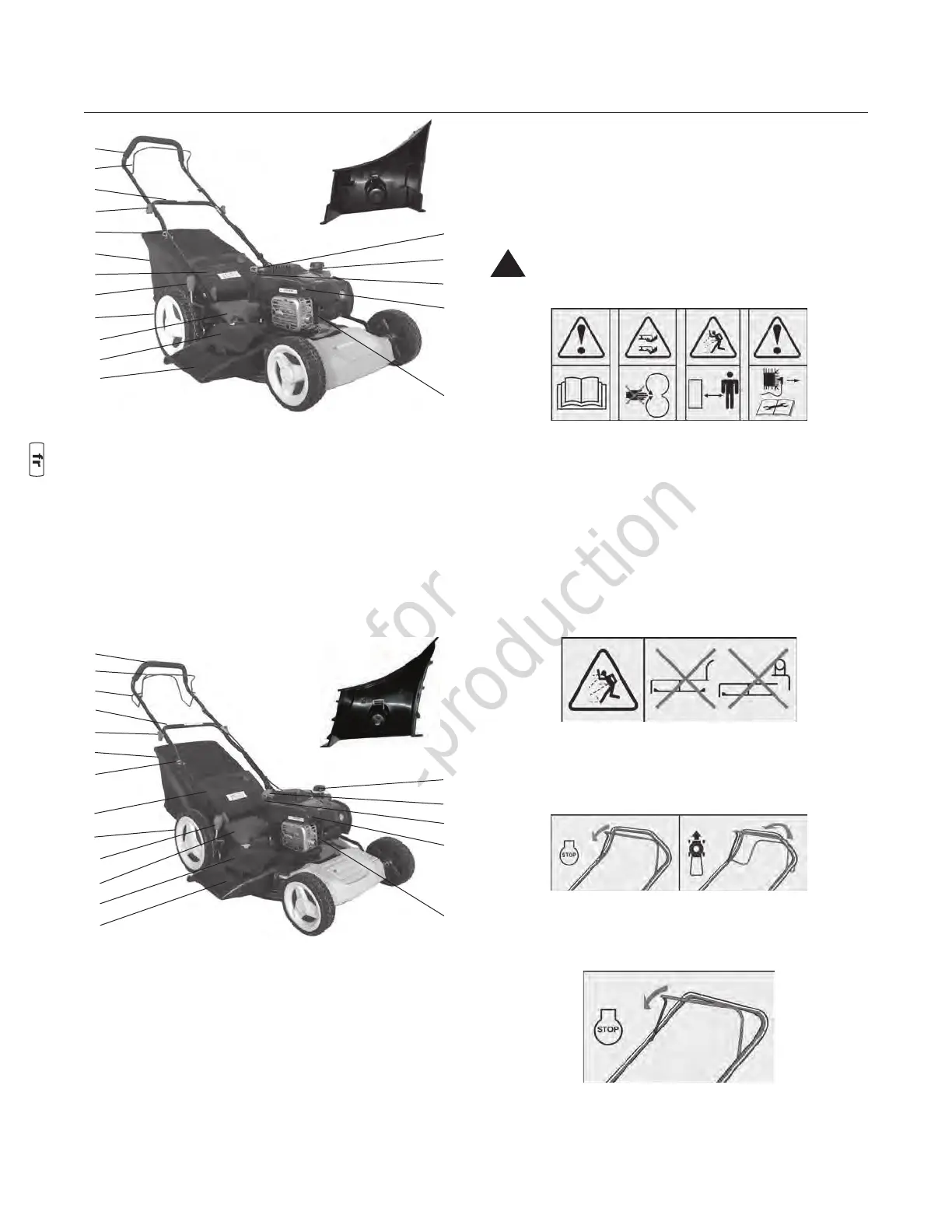pas faire fonctionner la tondeuse tant que les composants