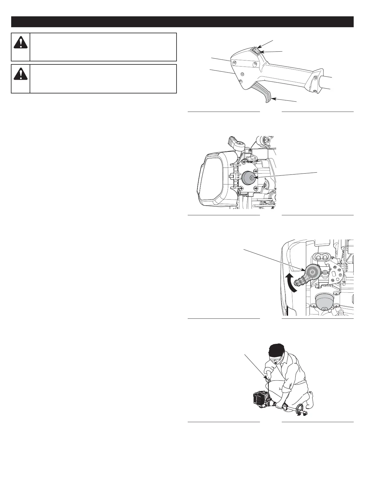 6. NE PAS enfoncer la manette des gaz (Fig. 6). Tirer sur la corde