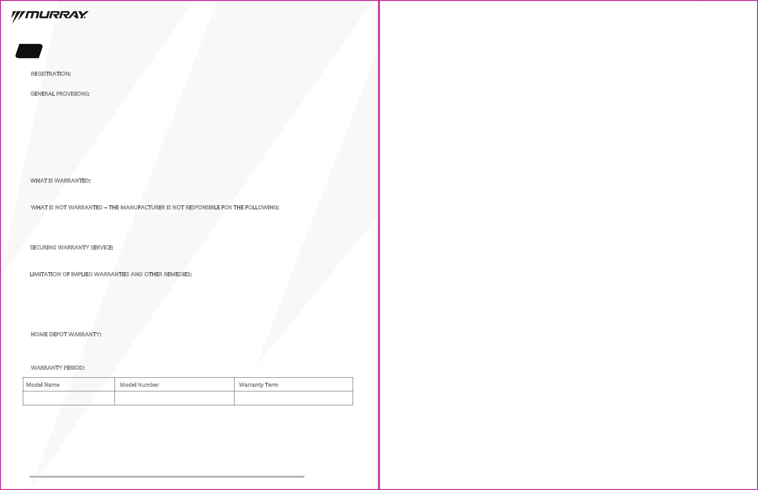 To secure warranty service, the purchaser must (1) Report the product defect to the Murray
