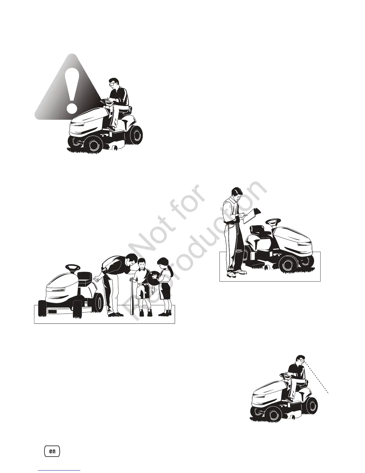 tracted to the unit and mowing activity. Never assume that