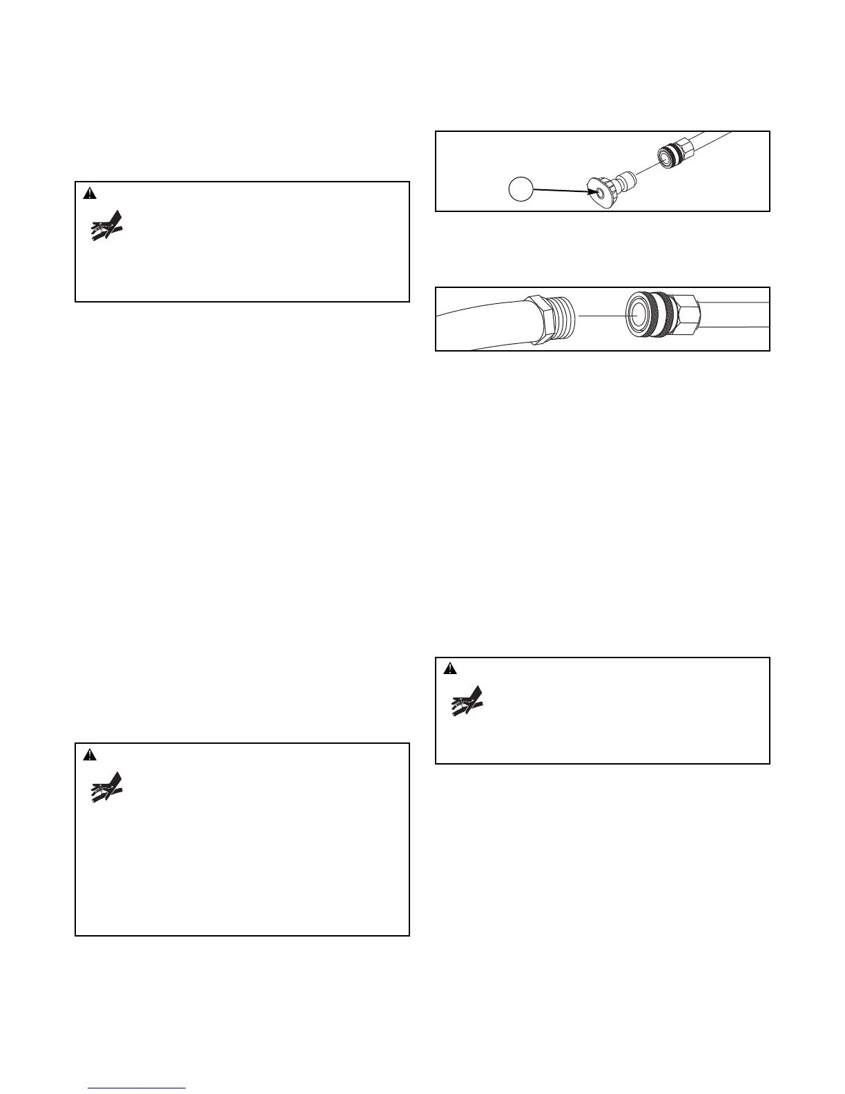 • Keep high pressure hose connected to pump and spray gun