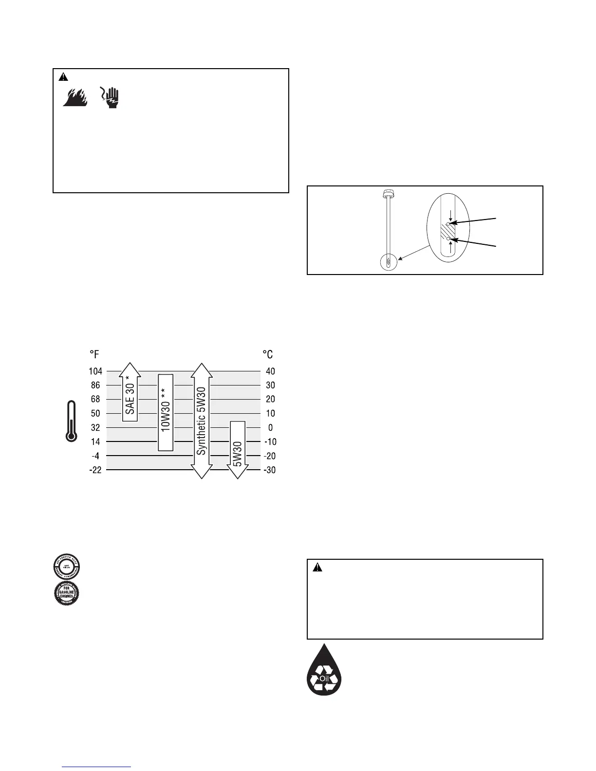 ** Au-dessus de 80ºF (27ºC), l’utilisation d’une huile 10W30 peut