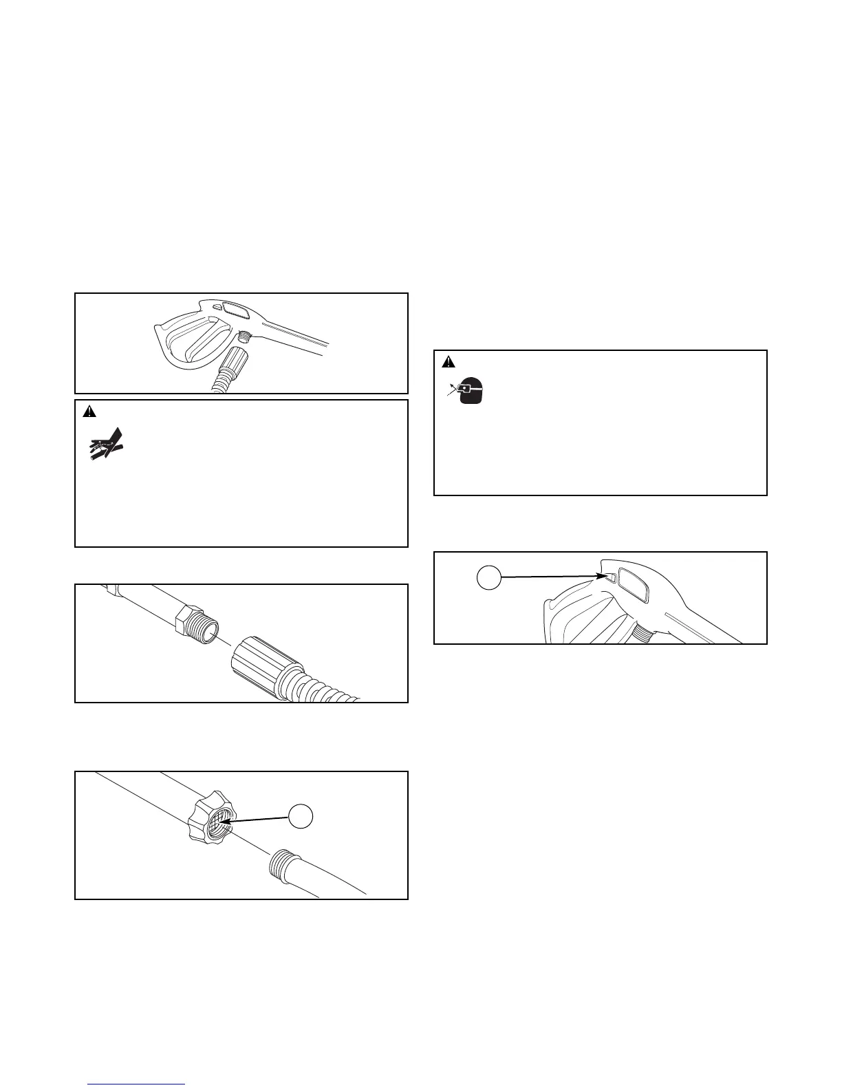 • Keep high pressure hose connected to pump and spray gun