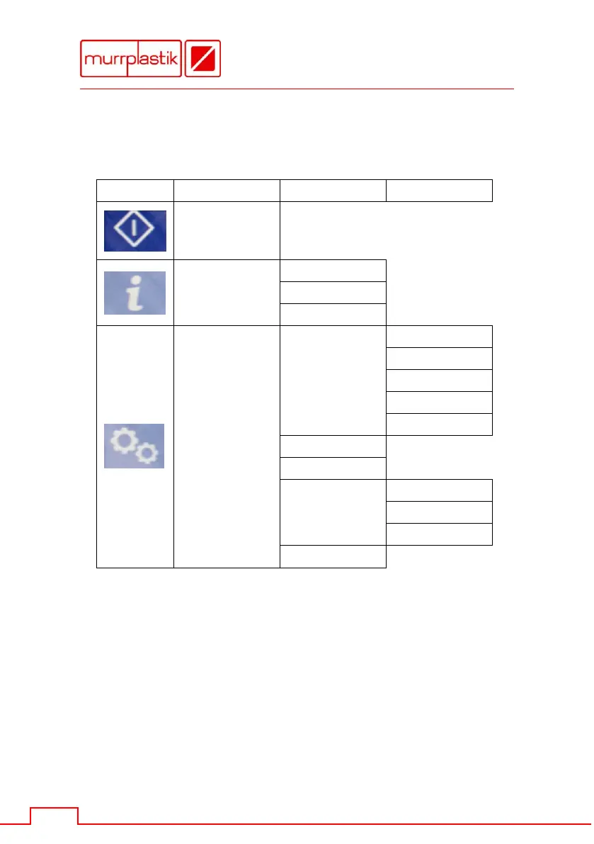 The following table shows the structure of the table in menu items and