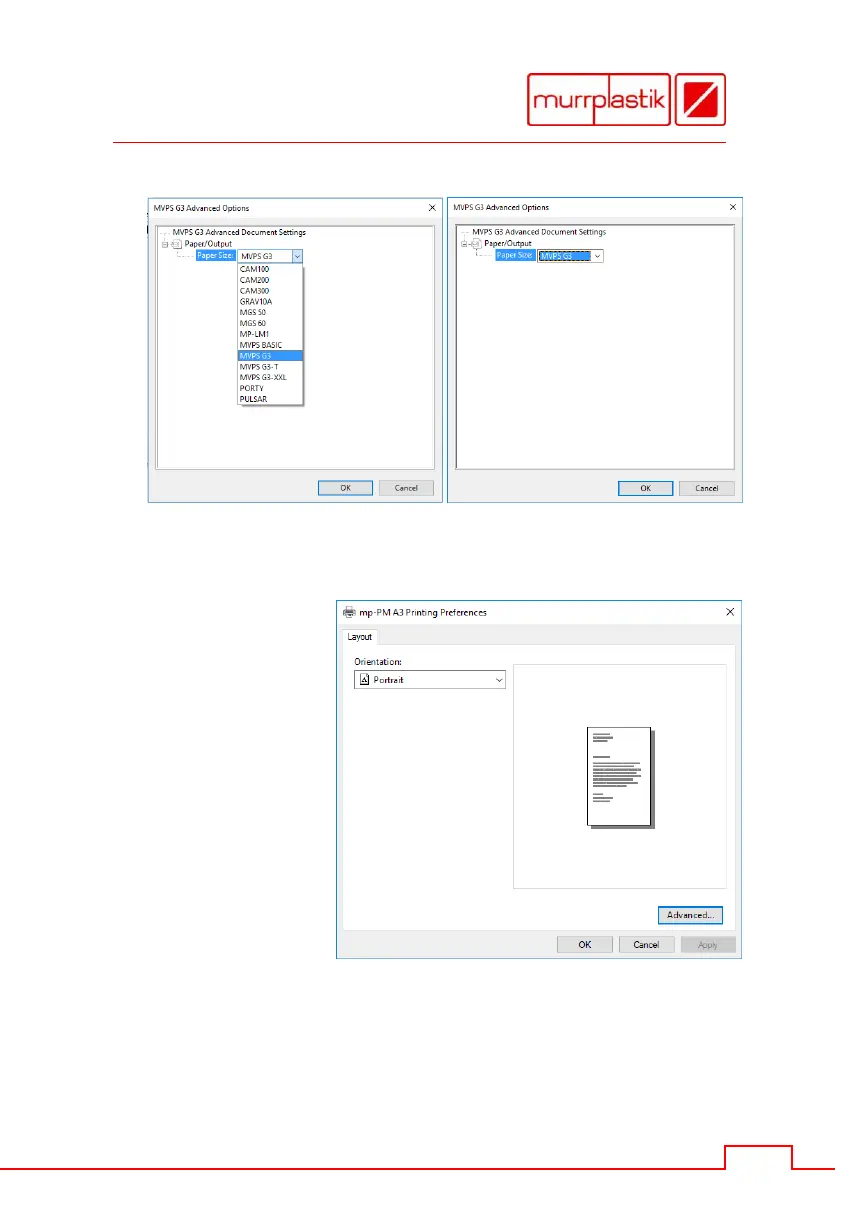 Check whether paper size 'MVPS G3' is chosen and confirm with [OK].