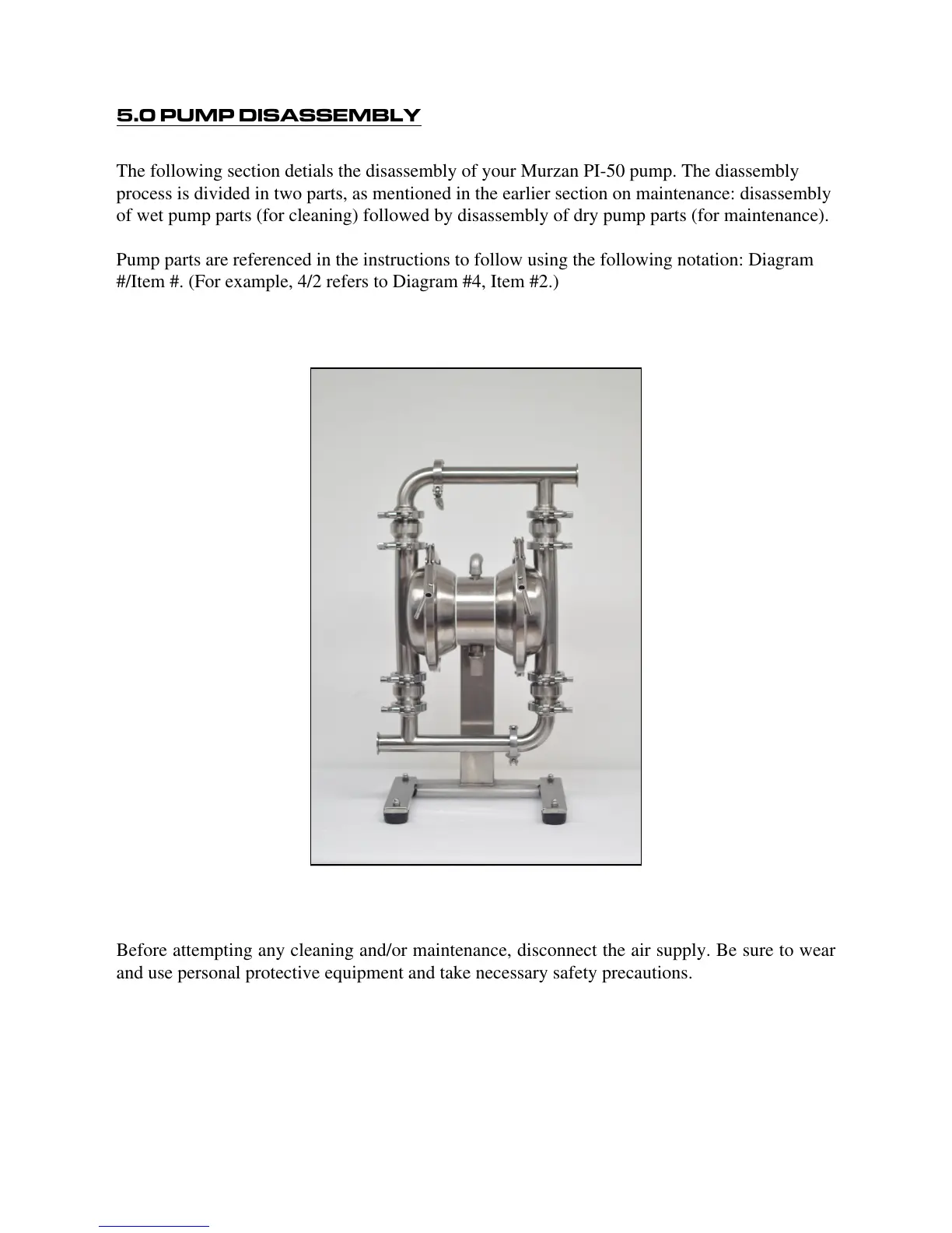 The following section detials the disassembly of your Murzan PI-50 pump. The diassembly
