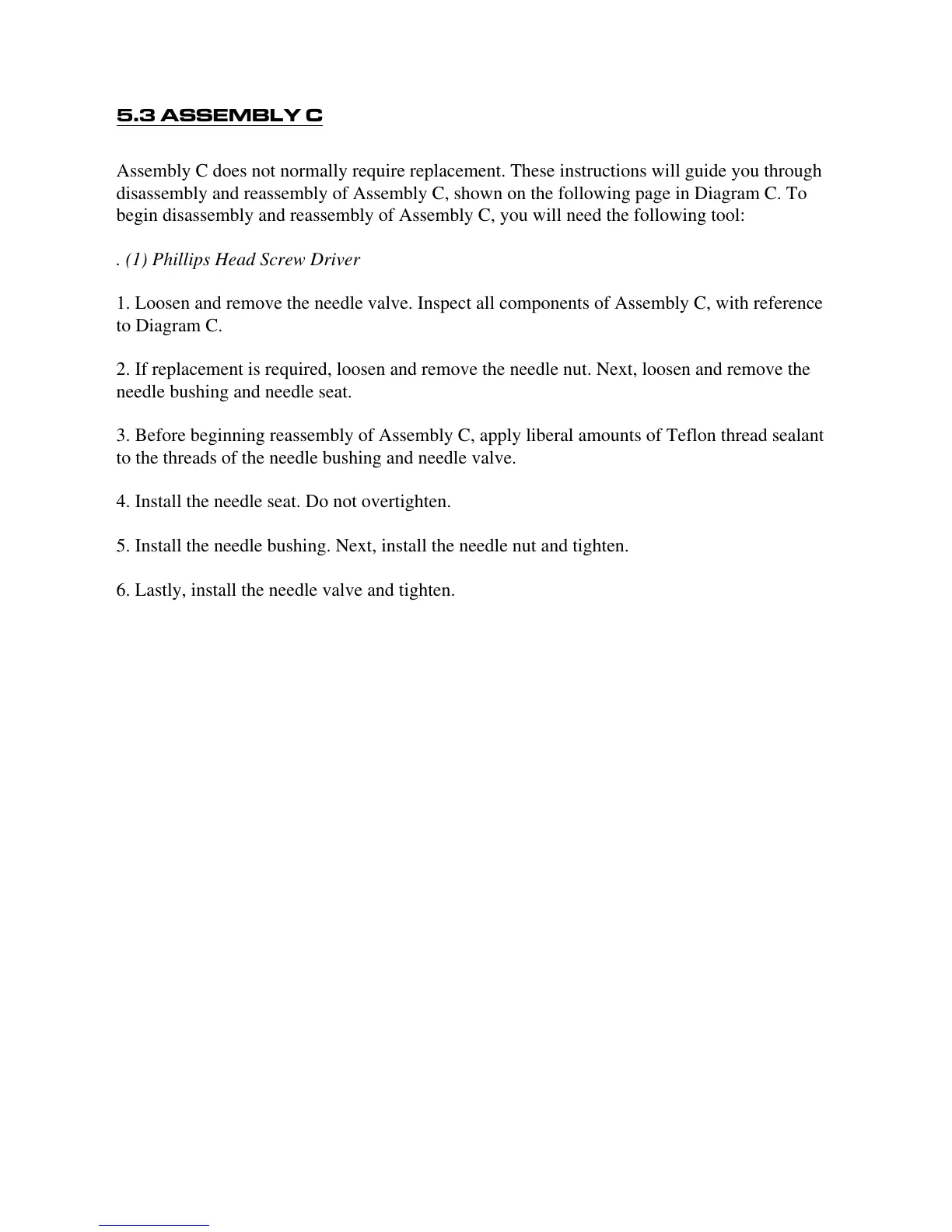 3. Before beginning reassembly of Assembly C, apply liberal amounts of Teflon thread sealant