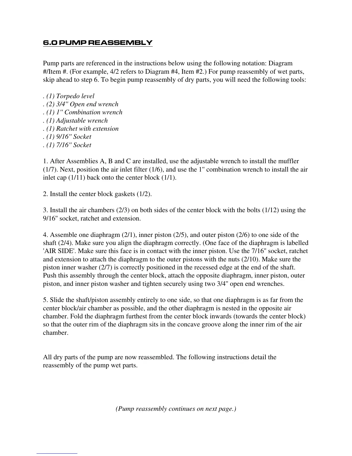 #/Item #. (For example, 4/2 refers to Diagram #4, Item #2.) For pump reassembly of wet parts,