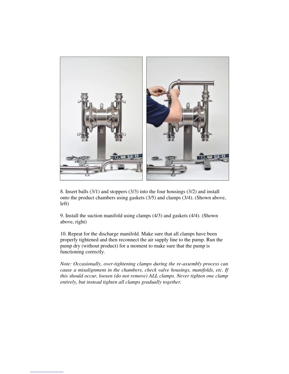 onto the product chambers using gaskets (3/5) and clamps (3/4). (Shown above,