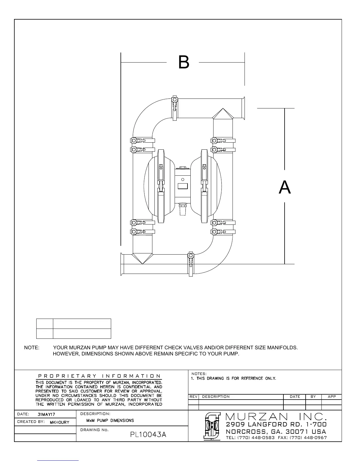 NOTE: YOUR MURZAN PUMP MAY HAVE DIFFERENT CHECK VALVES AND/OR DIFFERENT SIZE MANIFOLDS.