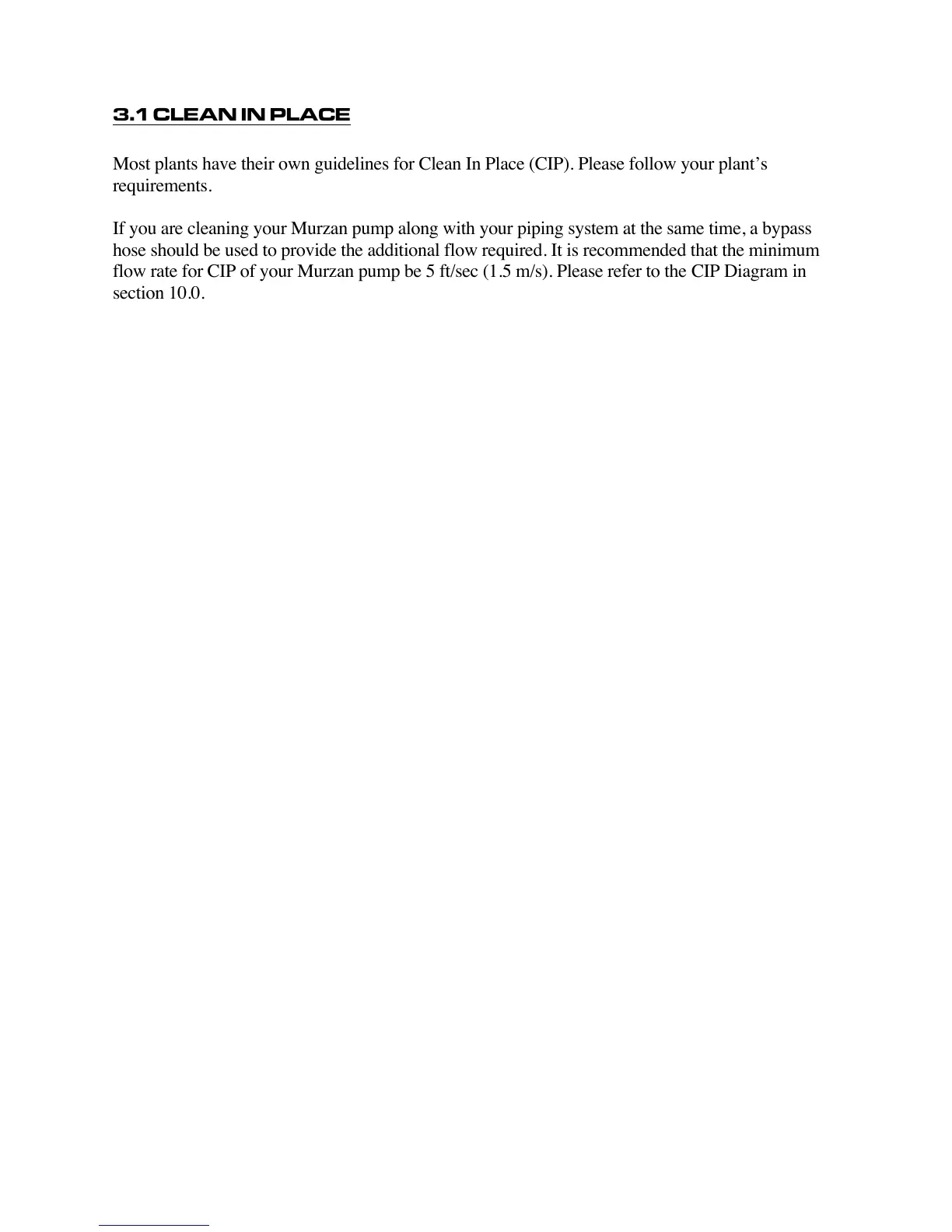 flow rate for CIP of your Murzan pump be 5 ft/sec (1.5 m/s). Please refer to the CIP Diagram in