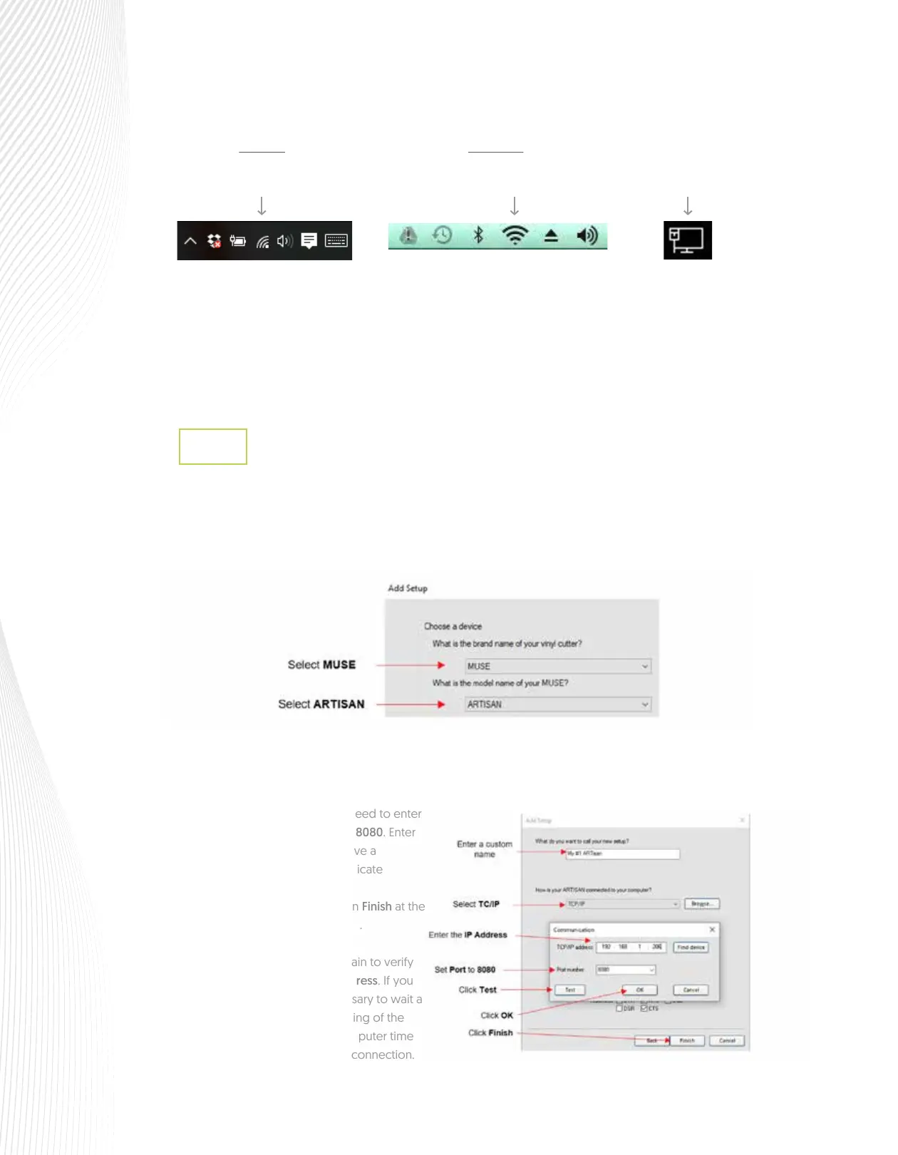 Click Next. You will be asked how your ARTisan is connected to the computer. Select TCP/IP. A small