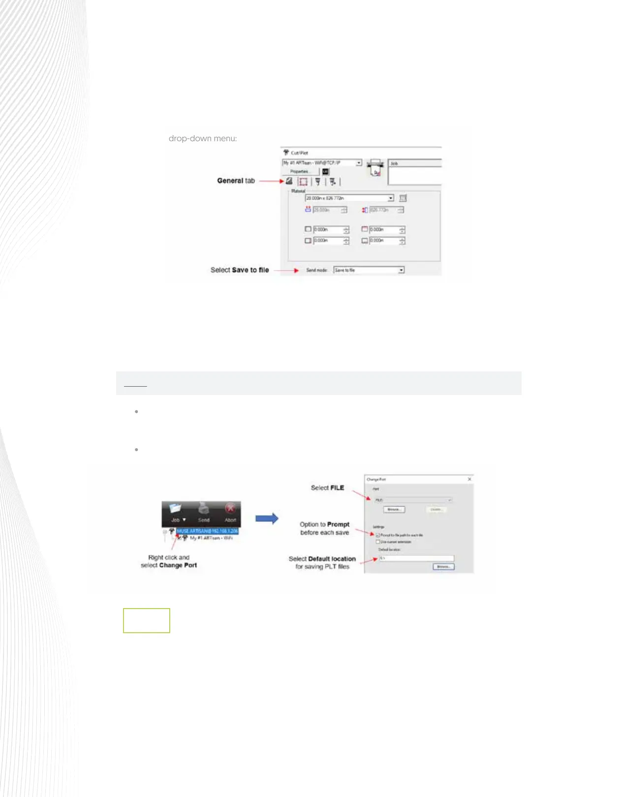 The Cut/Plot window will also have opened. On the General tab, select SAVE to FILE from the