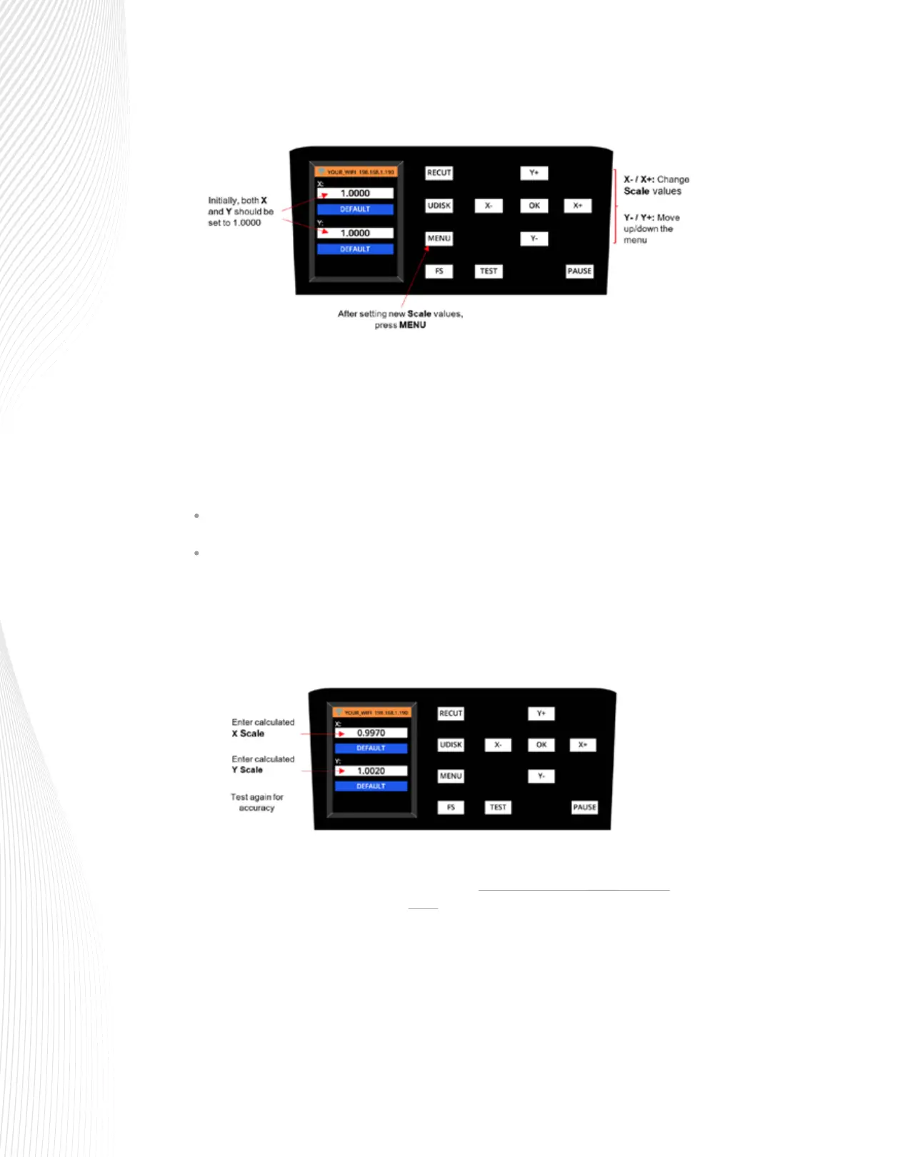 entered into the SCALE screen. Then enter those new SCALE values and test again.
