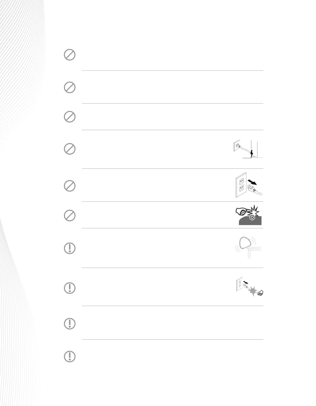 Don't excessively bend, pull, or fold the power cable or place weight on it.