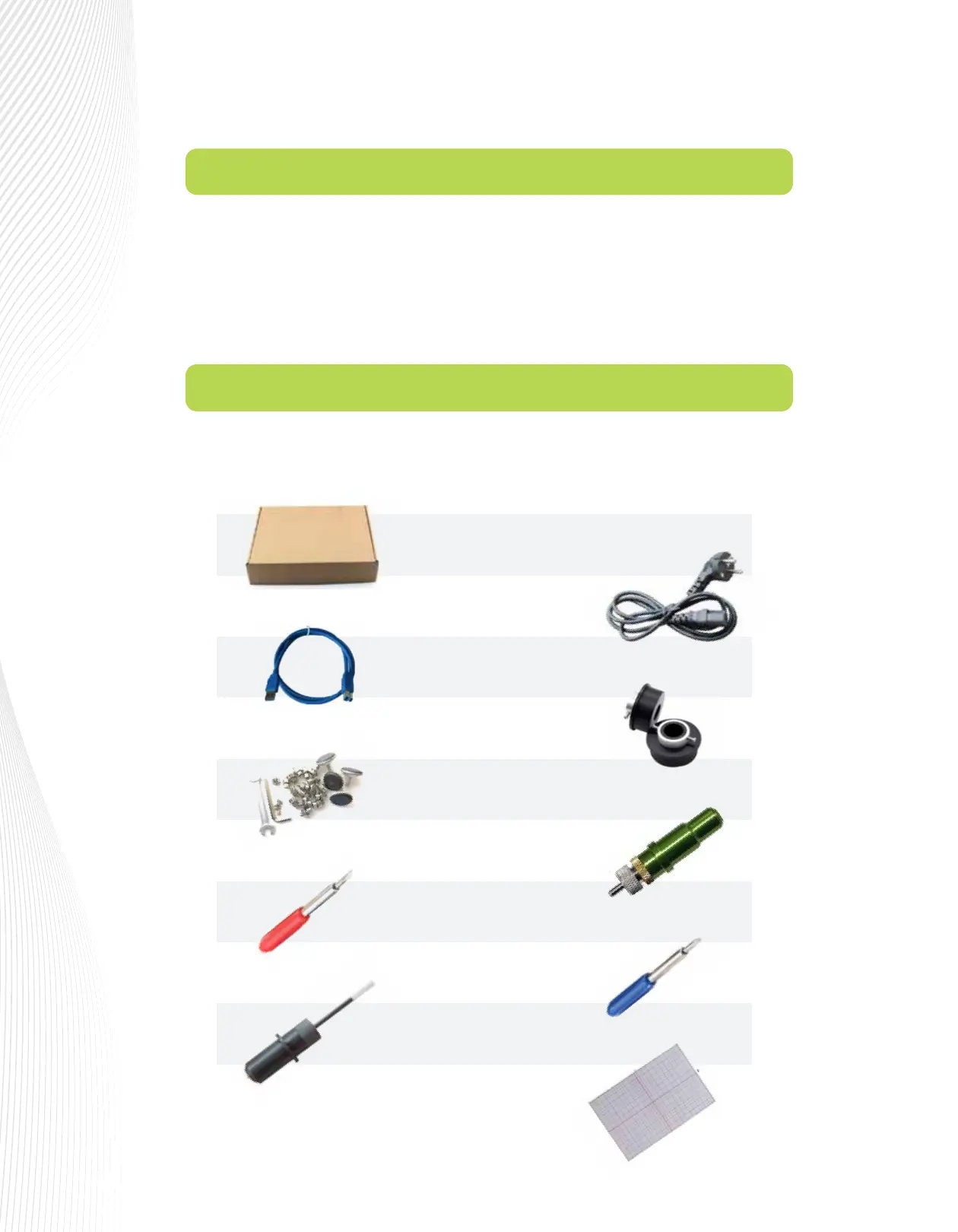 Besides the ARTisan cutter and cutter stand, your box should also contain the following items: