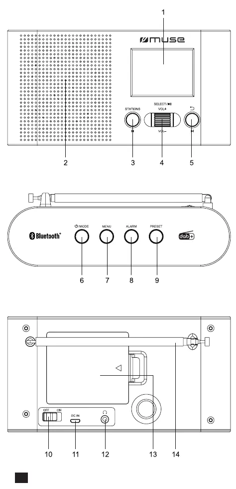 6. / MODE: To turn unit on/ standby mode; To select DAB, FM and Bluetooth