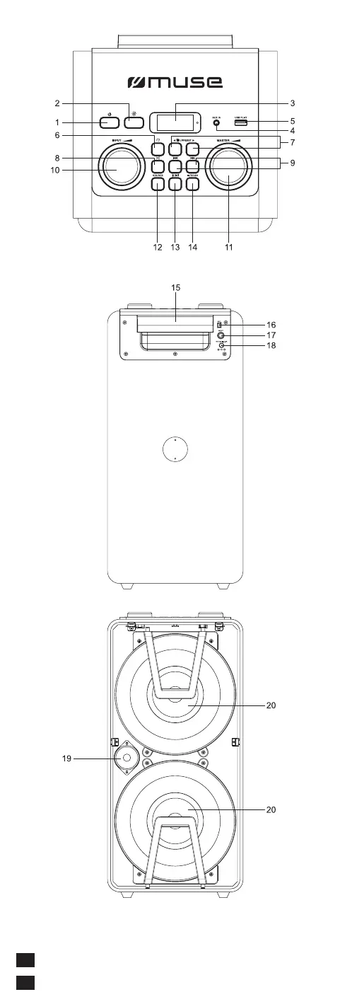 1. Schalten Sie die zwei M-1805 DJ Lautsprecher ein. Drücken Sie die Taste