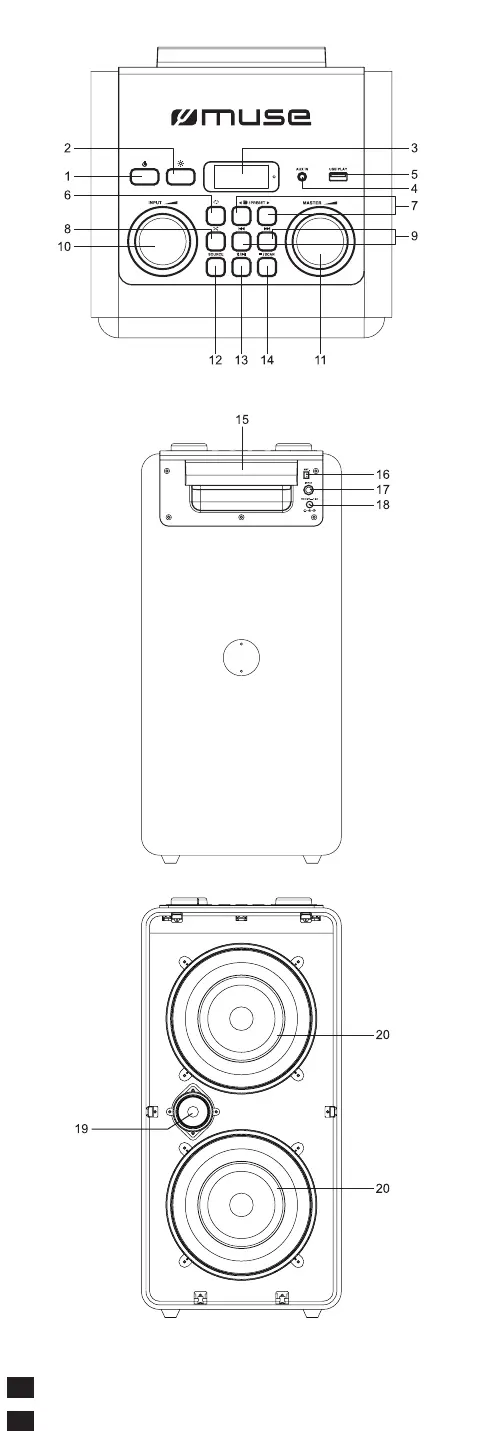 1. Allumez les deux haut-parleurs Bluetooth M-1808 DJ. Appuyez plusieurs fois sur le