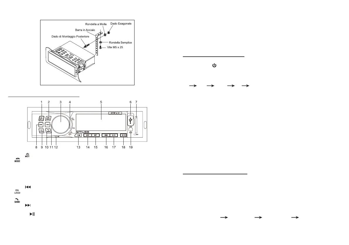 1. Tasto : Accende e spegne l’apparecchio; Consente di togliere o di ripristinare il suono