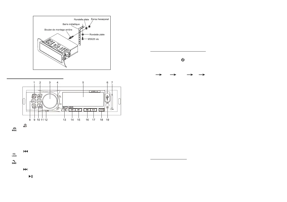 17. Touche 5 / -10 : Sélectionne le canal 5 en présélection en mode radio. Revient en arrière