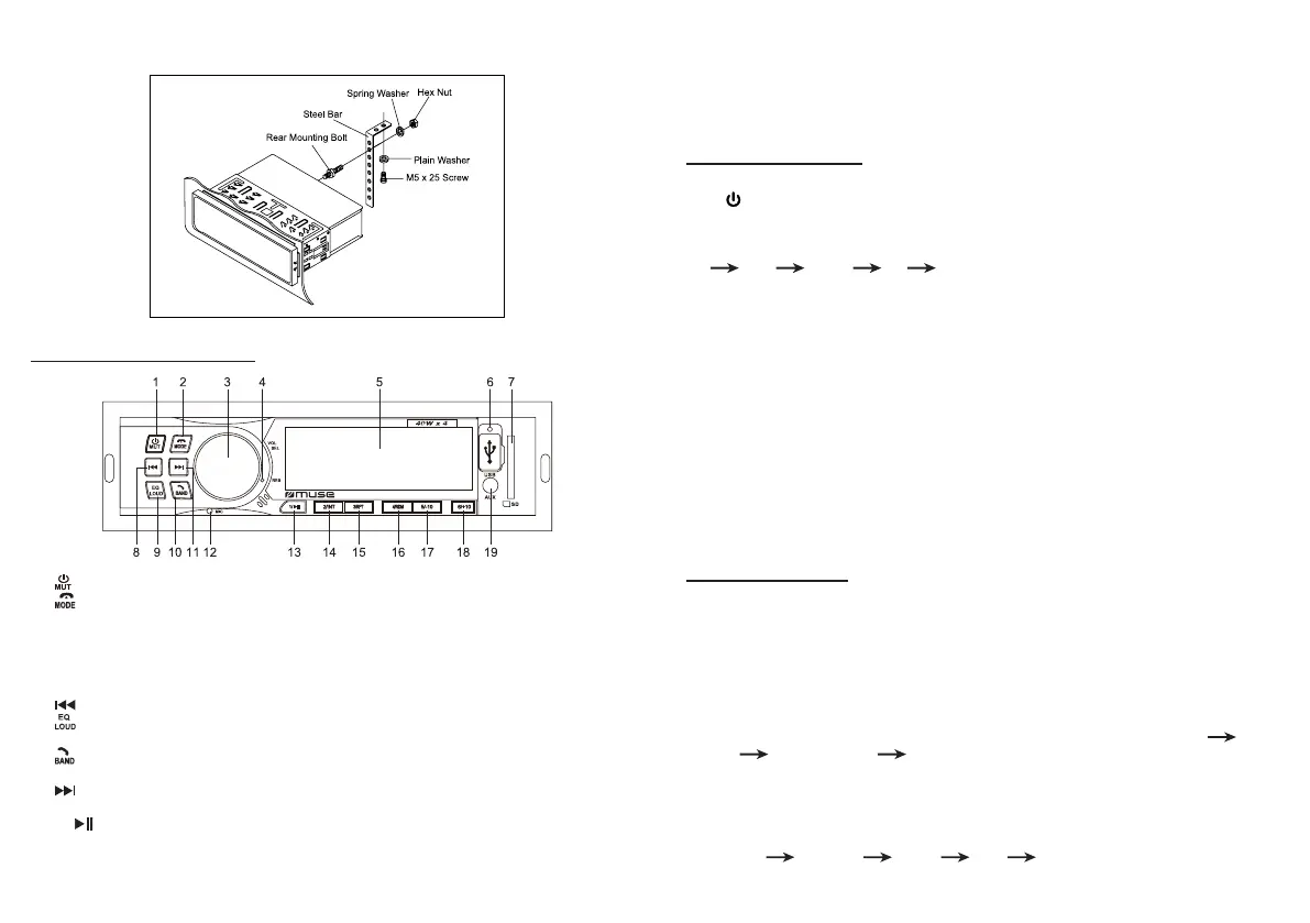 9. EQ: To select desired sound eects: FLAT /CLASSIC /ROCK / JAZZ / POP; LOUD: