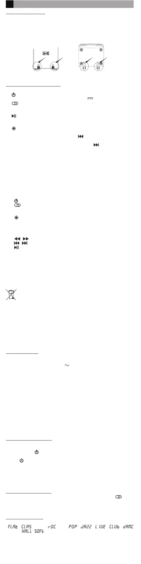 Wählen Sie die Funktion (Bluetooth, USB, TF, AUX, LINE) durch wiederholtes