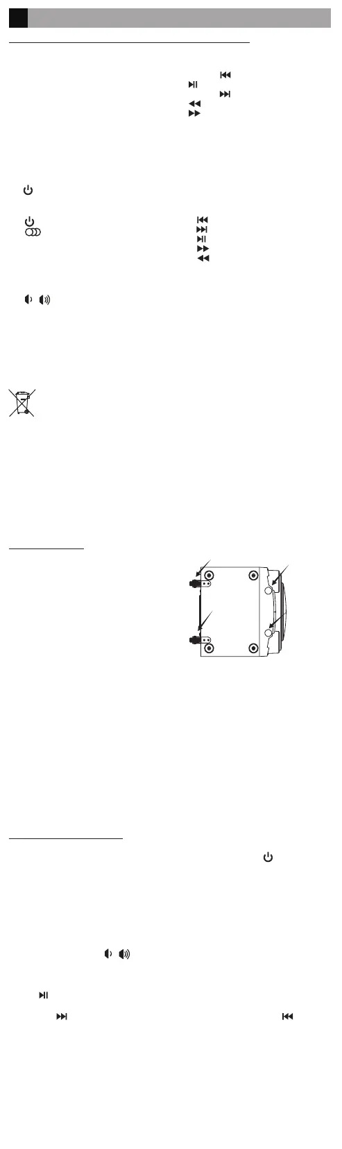 • When the USB charging cable is connected to the unit, music playback in