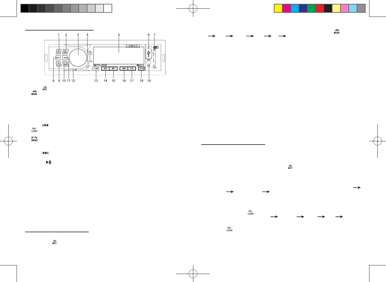 1. Botón : Para encender/apagar la unidad; Supresión y restablecimiento del sonido