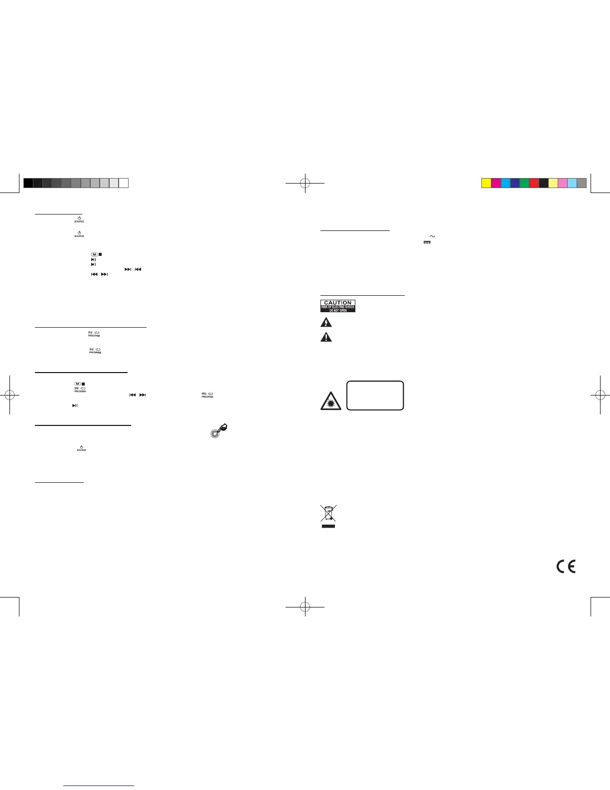 6. Premere il tasto per avviare la riproduzione. Aprendo il vano CD o spegnendo l’apparecchio il programma verrà cancellato.