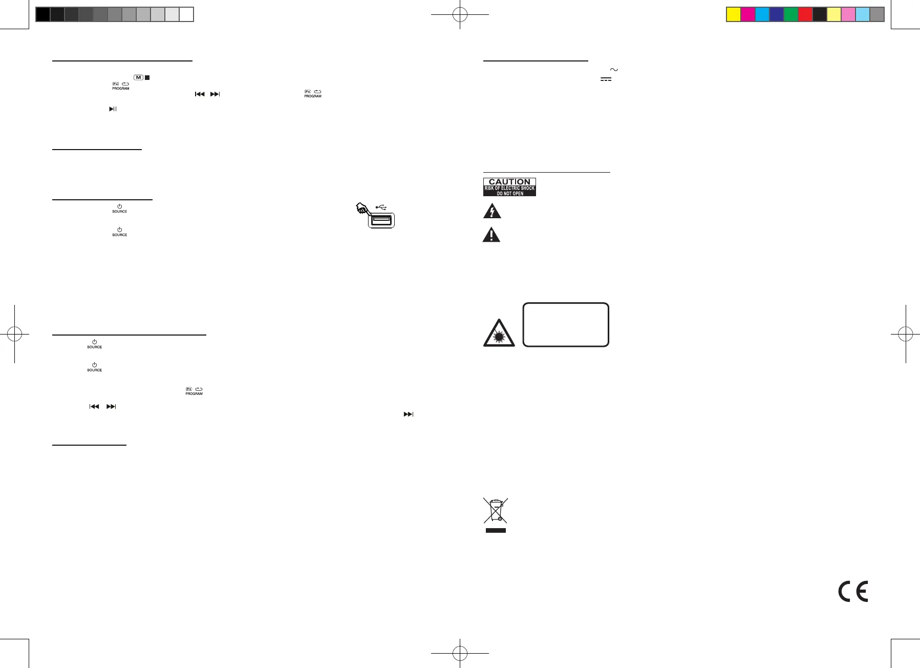 6. Premere il tasto per avviare la riproduzione. Aprendo il vano CD o spegnendo l’apparecchio il programma verrà cancellato.