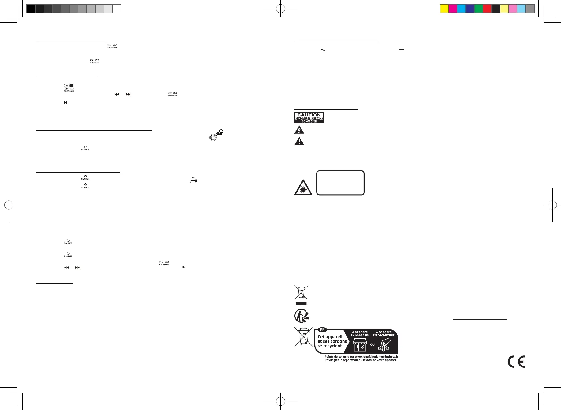 CD: jusqu’à 20 programmes; MP3: jusqu’à 99 programmes.
