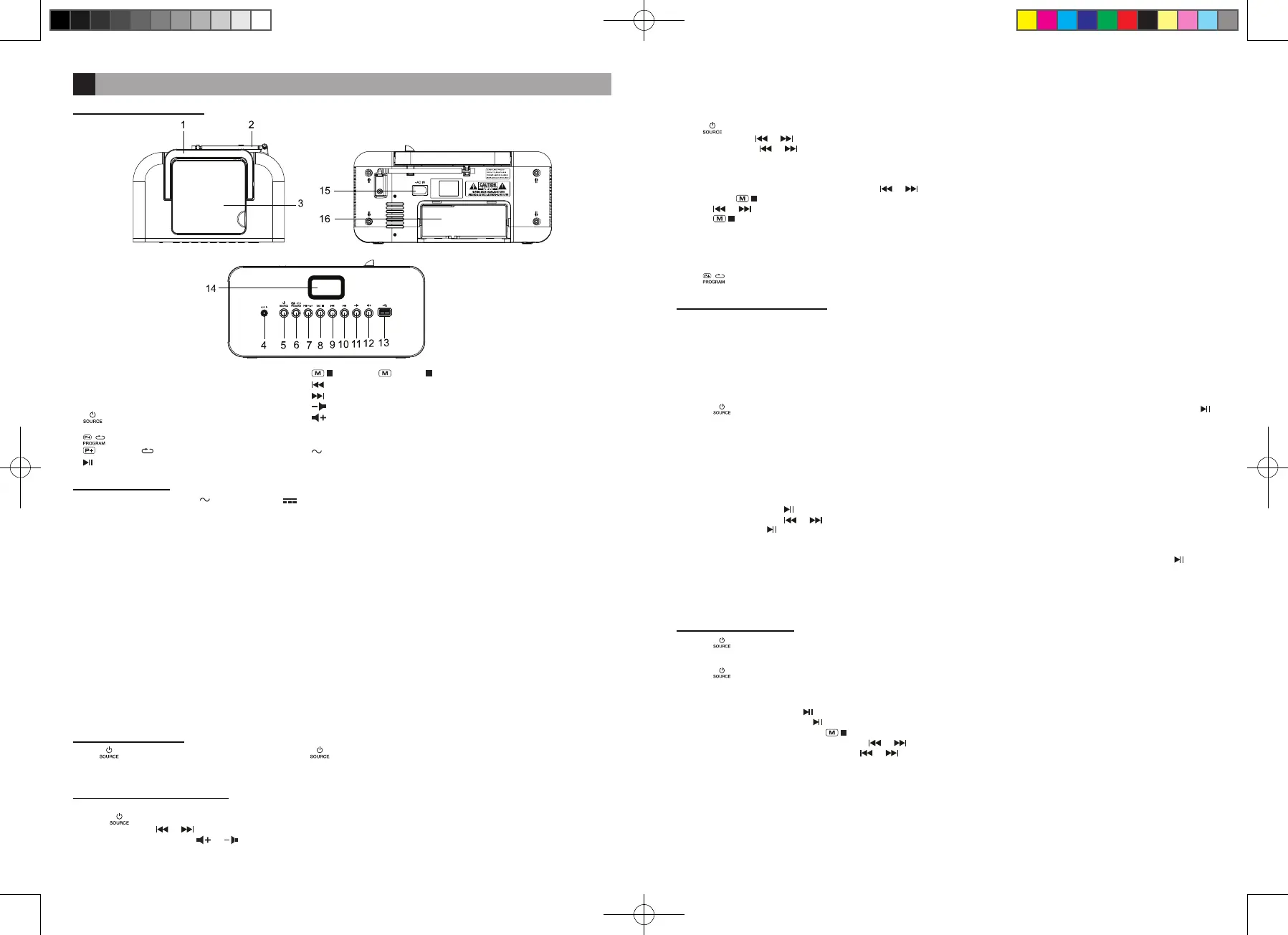 Press to turn the unit on. When the unit is on, press again to select your listening source: FM, AM (MW), CD, USB, AUX