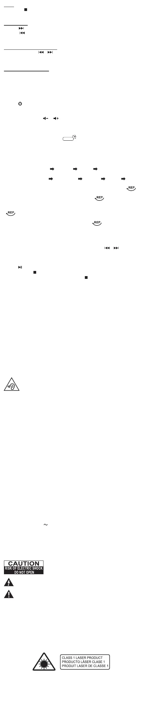 Repeat All – To repeat all tracks, the repeat indicator “ and “ALL” will light