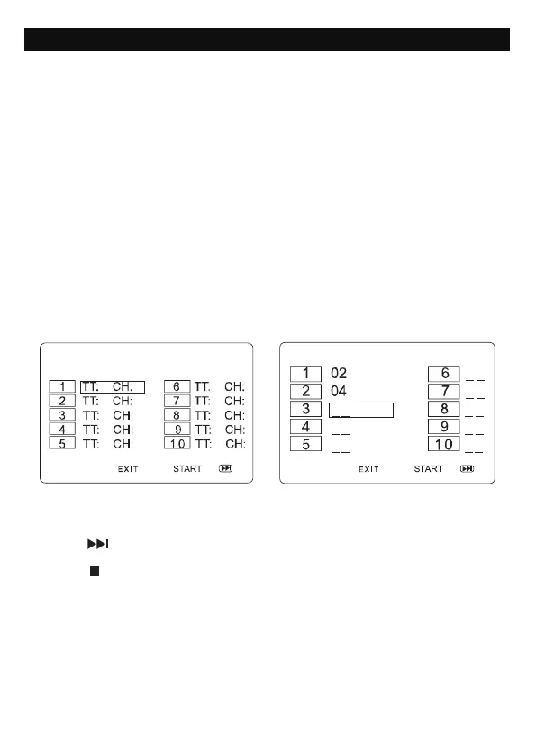 Note: press to go to next page for programming track 11 to 20.