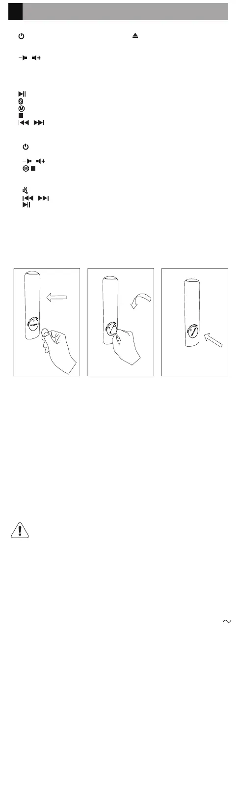 - No caso de não utilização prolongada do telecomando, retire a pilha de modo a