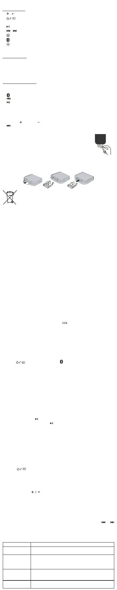 mode Bluetooth et le mode AUX IN. Tenez appuyée pour passer en