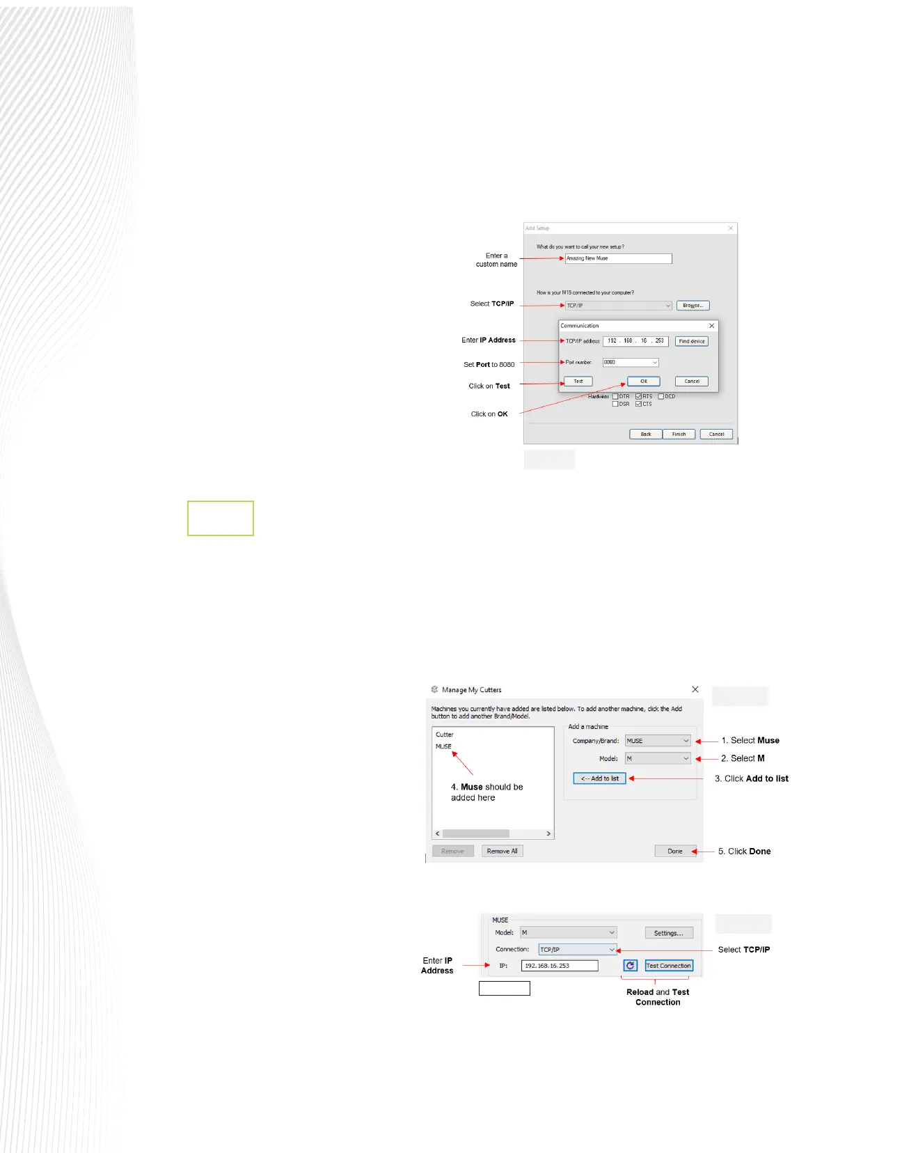 Select TCP/IP. A small window will appear in which you can type in the cutter’s IP Address from Step 7 in