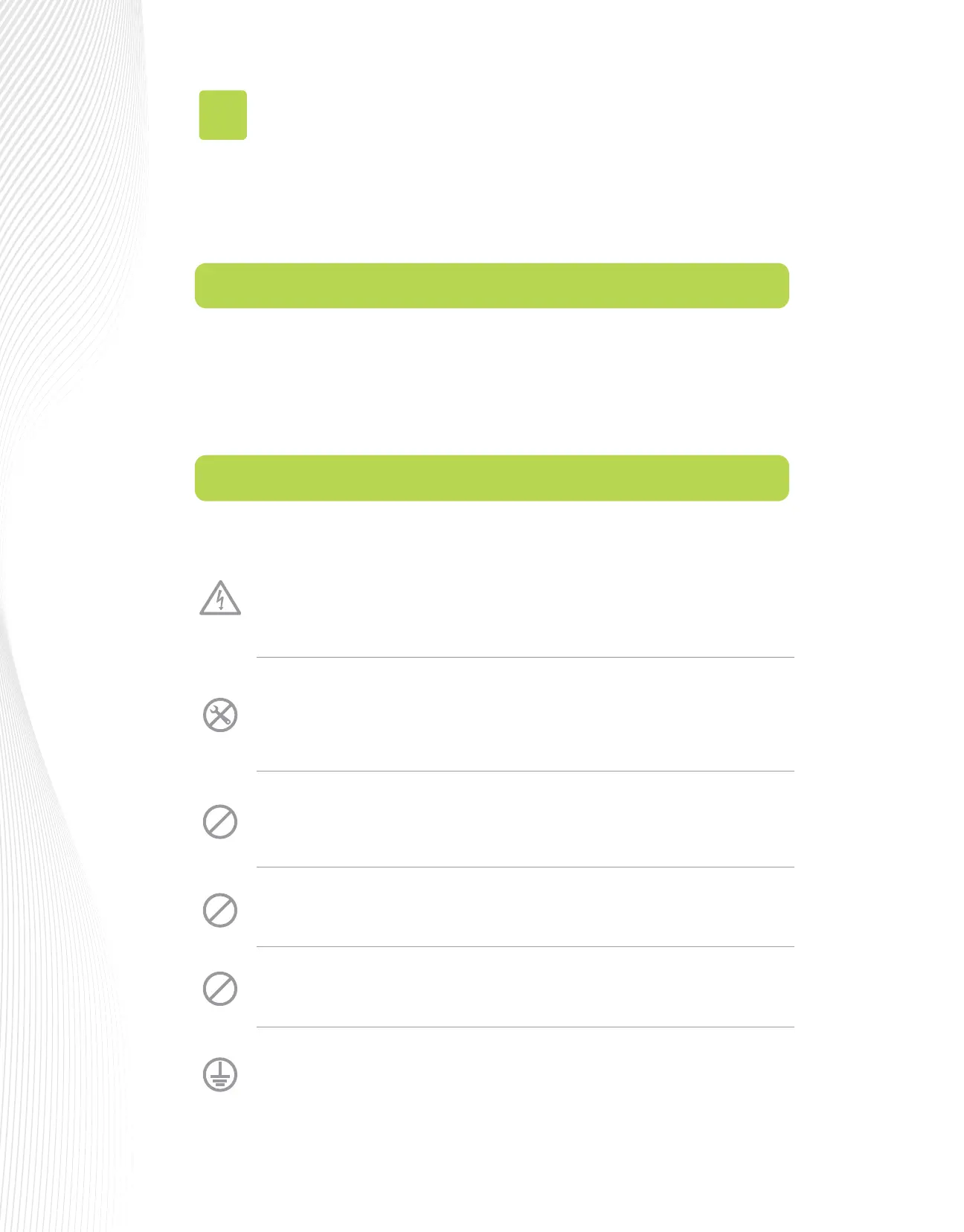 dierent symbols denoting specic warnings. The symbol at left, for example, warns of a