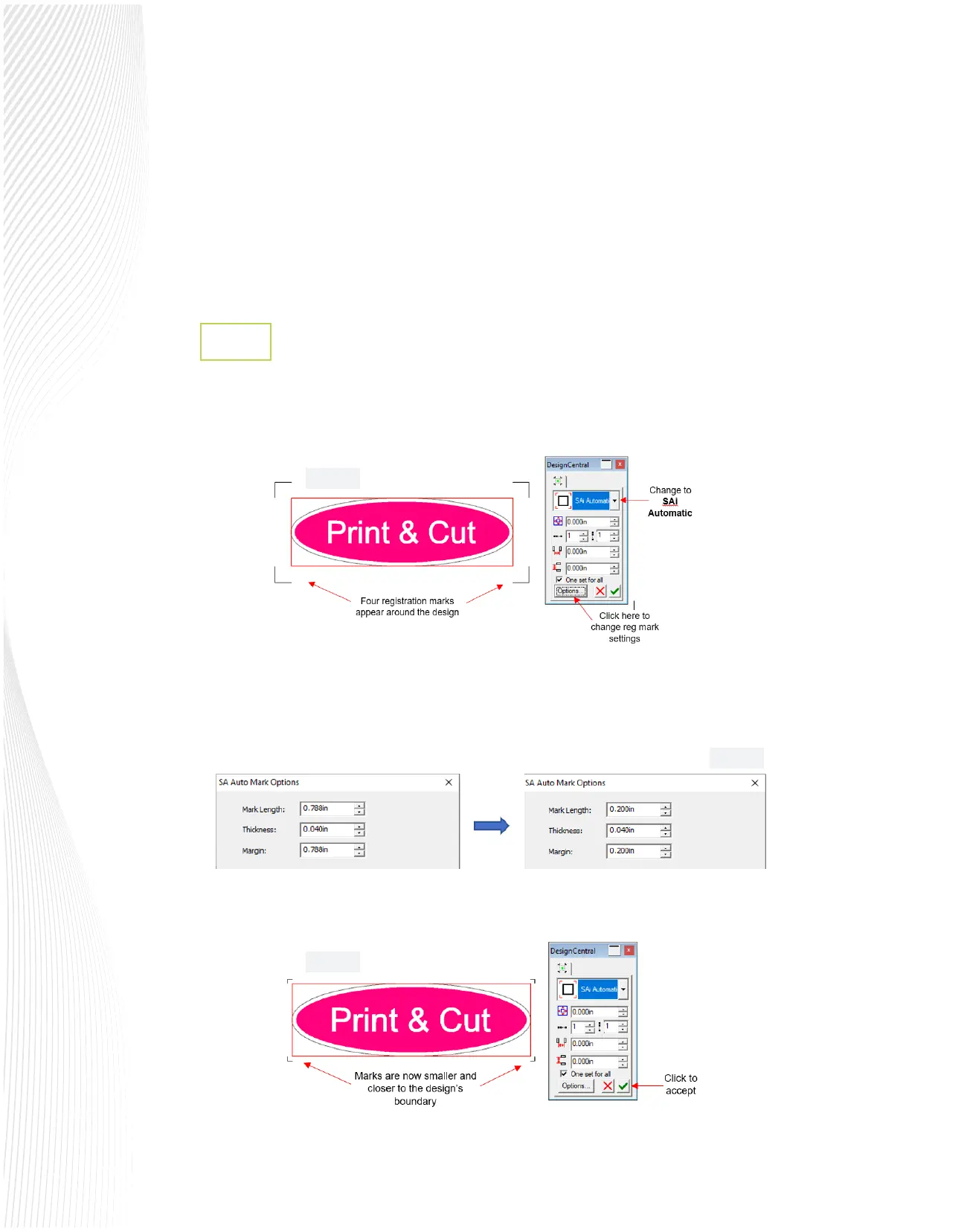 the type and sizing of registration marks can be modied. First, select SAi Automatic from the drop-down