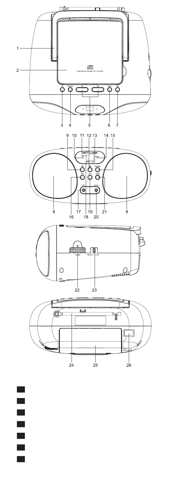 4. SOURCE: FM (UKW), AUX IN oder CD