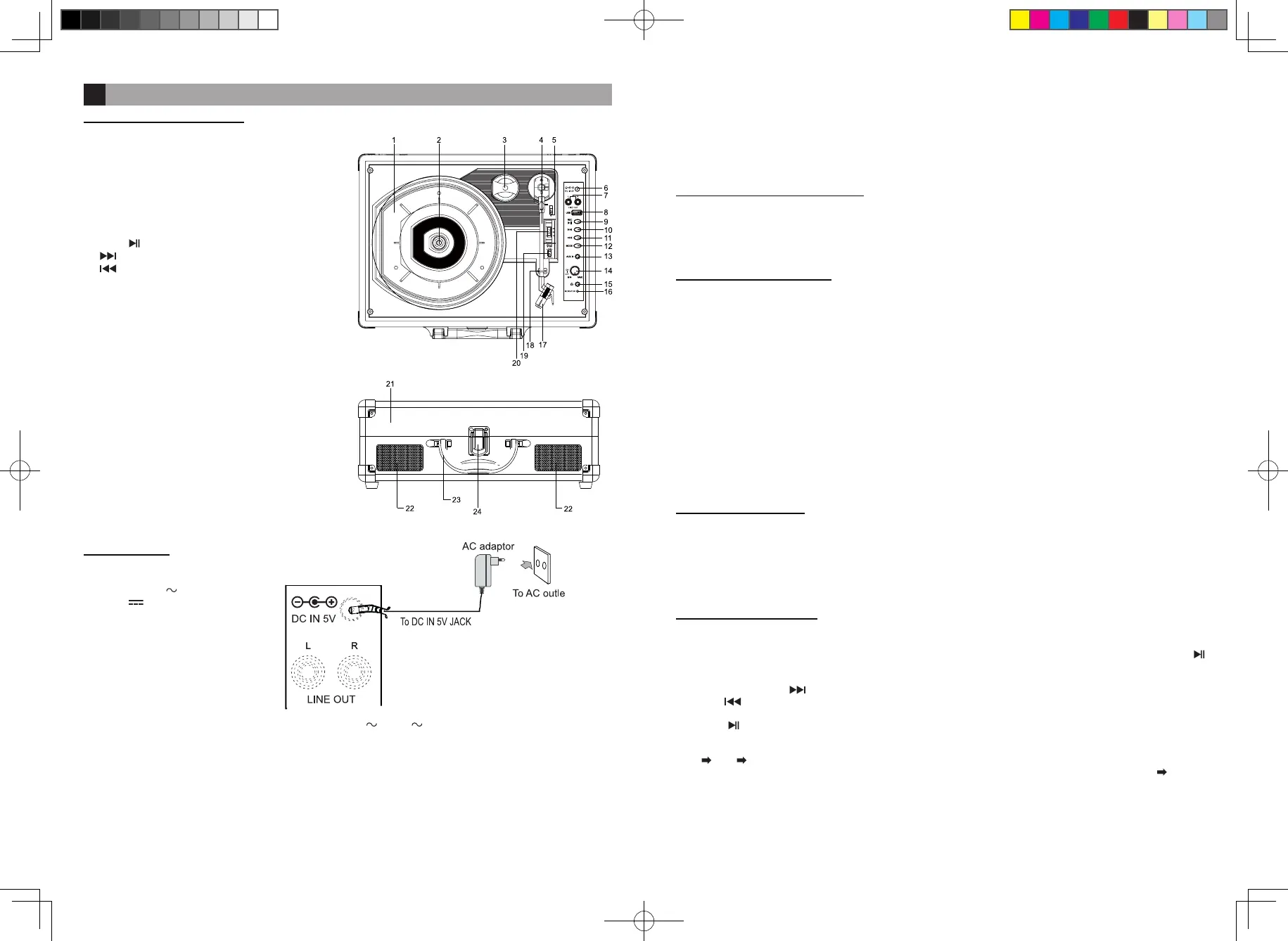 Observación: Cuando se dispositivo USB está enchufado en el giradiscos, la orden de cambio es el modo de reproducción