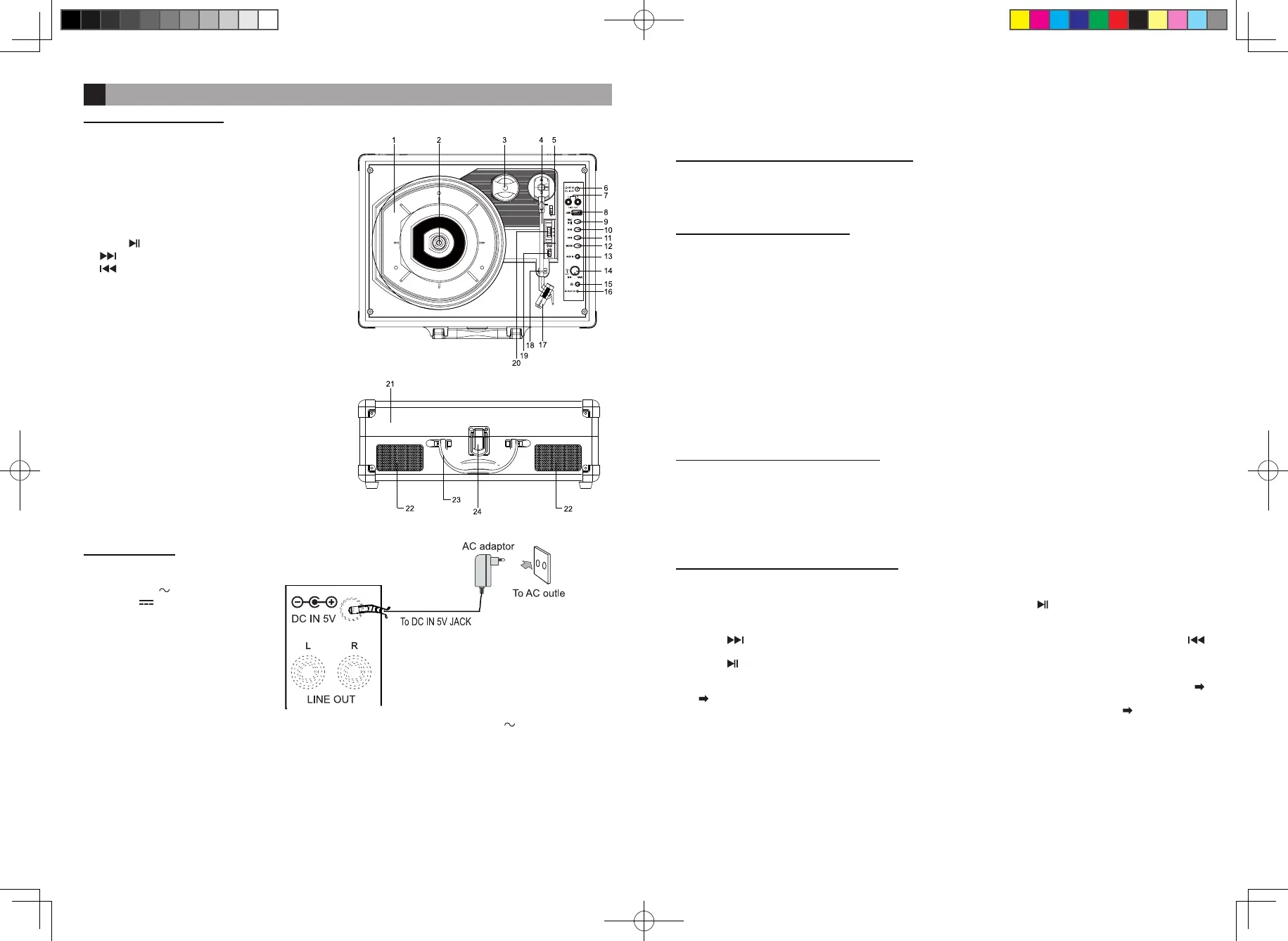 Nota: Quando viene dispositivo USB è inserito nel lettore giradischi, l'ordine di modica modalità è la riproduzione fono