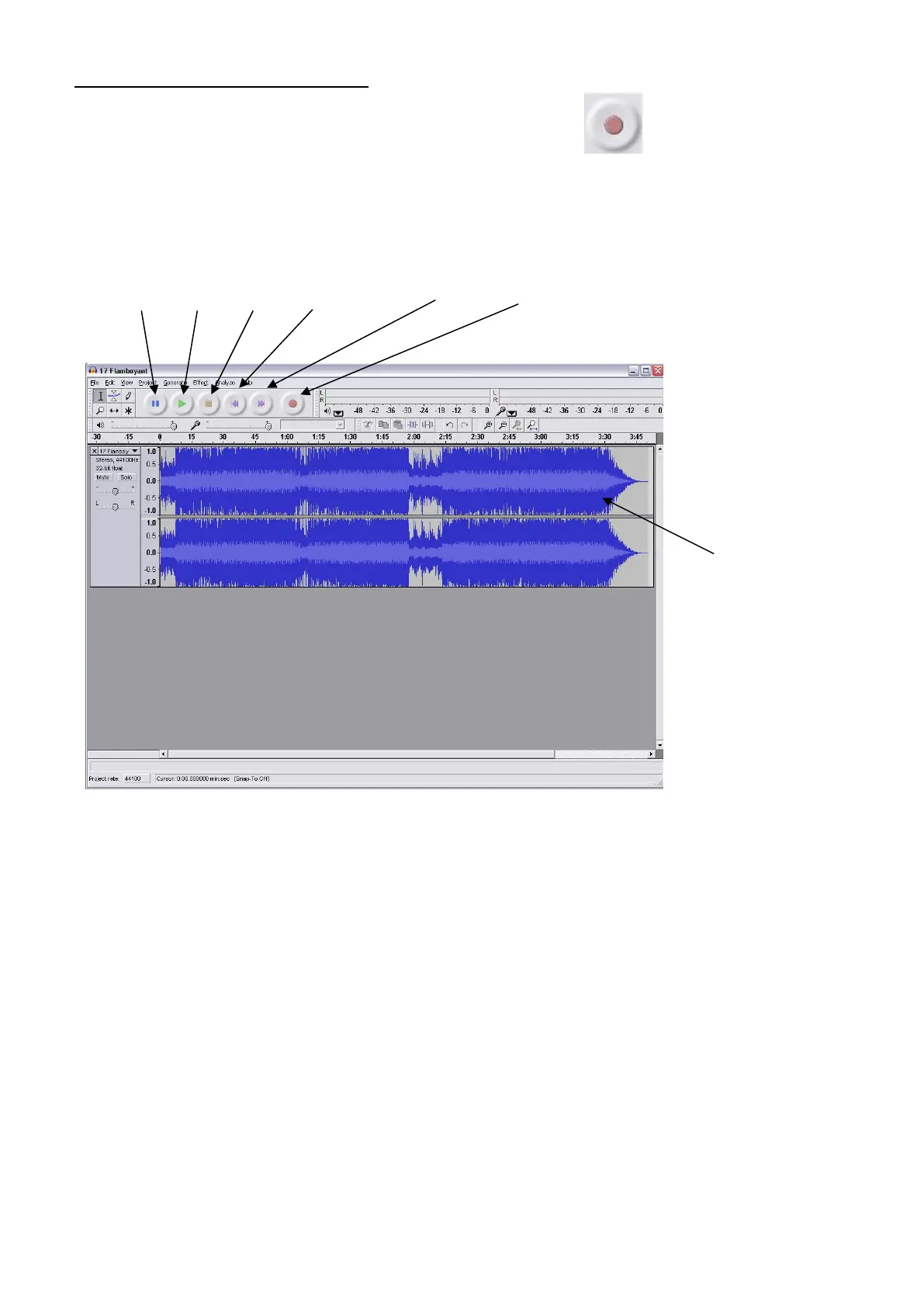 ● Start the record playing as described above, and press Record at the top of the Audacity