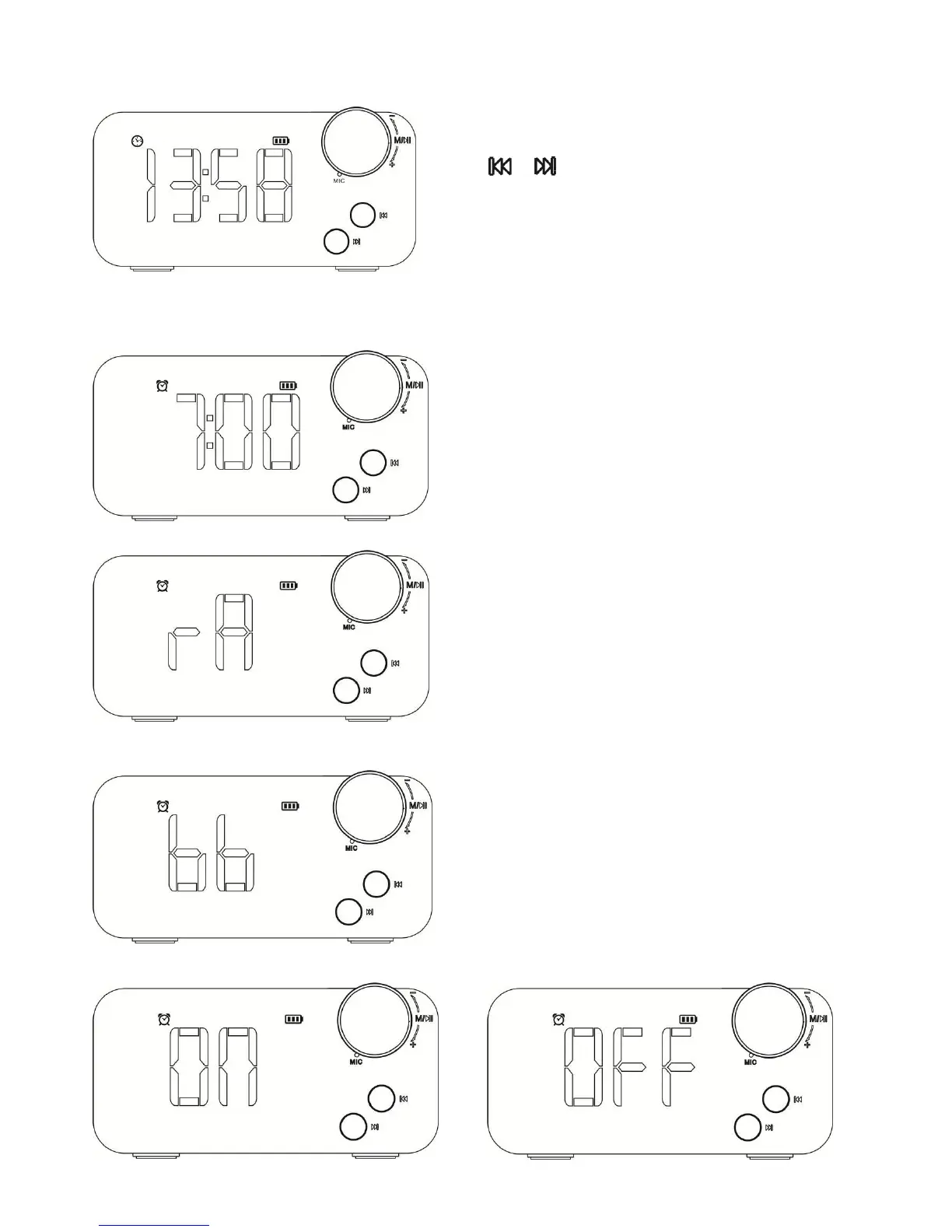 Rotate “KNOB” key to adjust alarm sound volume.
