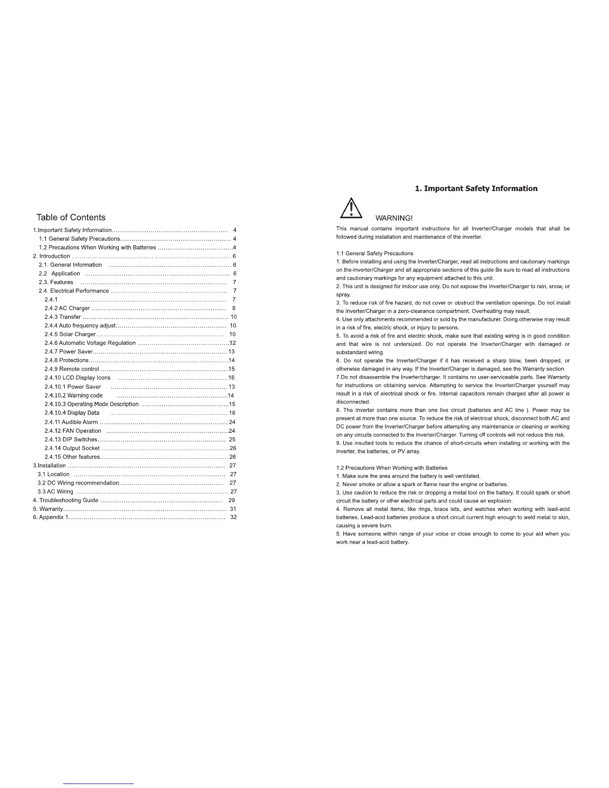 Must pv3500 - 1. Important Safety Information; 1.1 General Safety Precautions; 1.2 Precautions When Working with Batteries