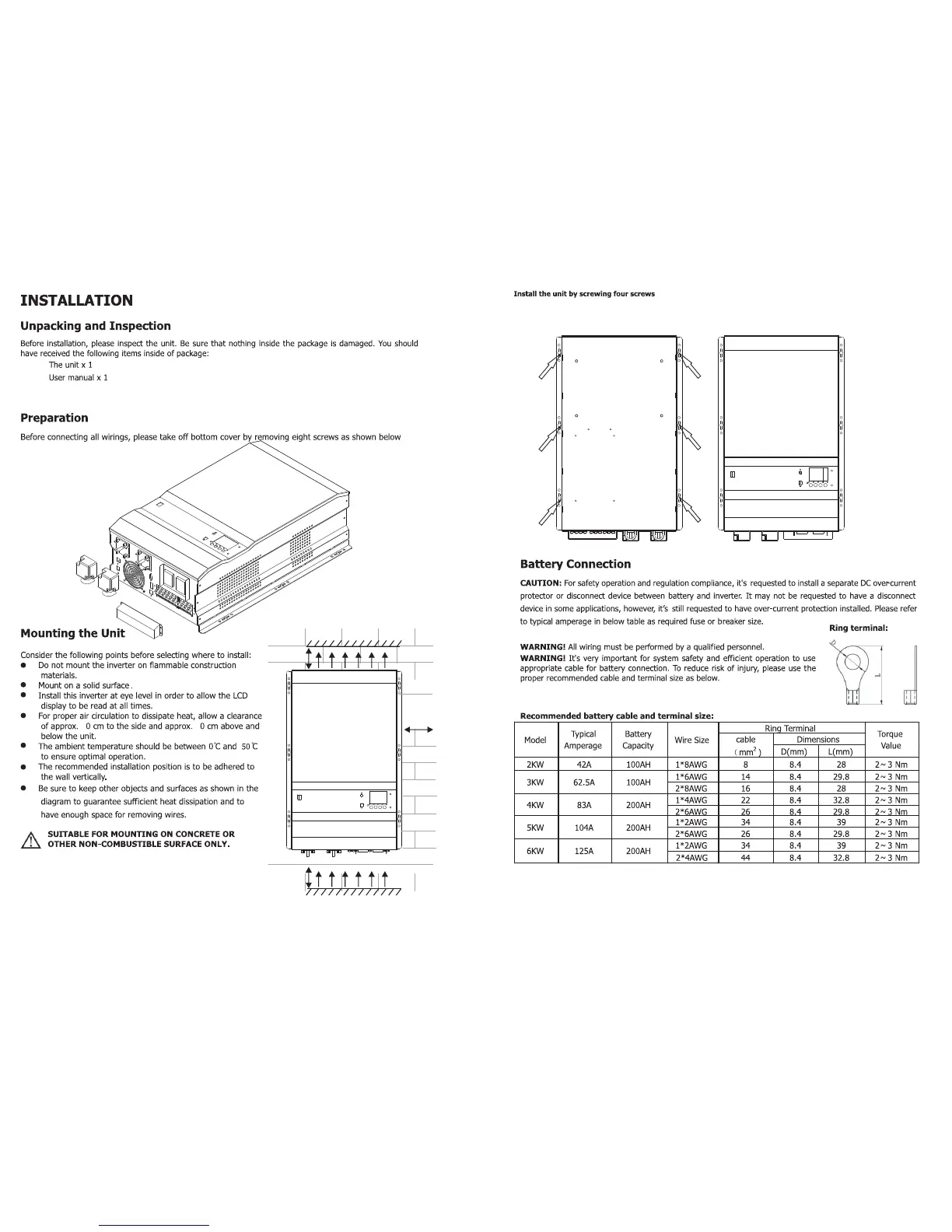 Must pv3500 - INSTALLATION; Mounting the Unit; Battery Connection
