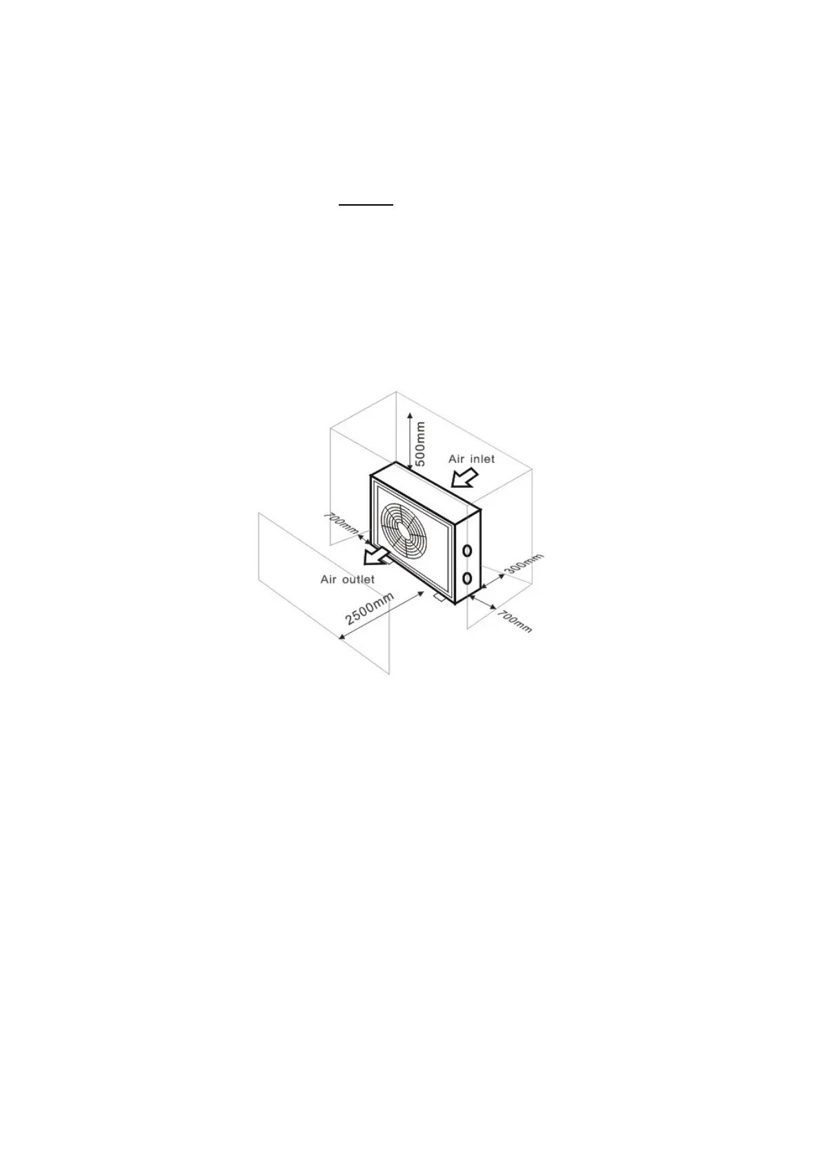 ATTENTION: Never install the unit in a closed room with limited air volume in which the air expelled from