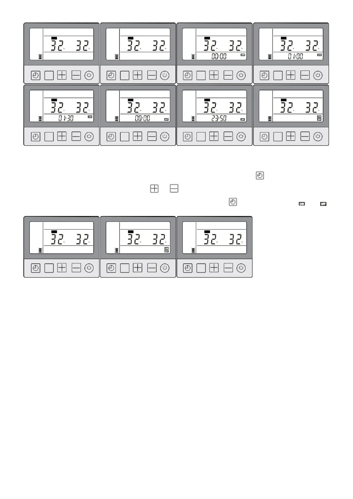 The above pictures show: Unit timing ON/OFF in Phase 2. Turn on unit on 1:30 and turn off on 23:50.